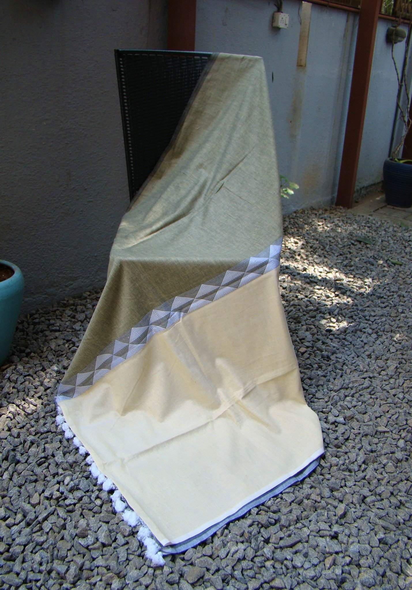 Beige/Grey/Black Khadi Cotton Saree