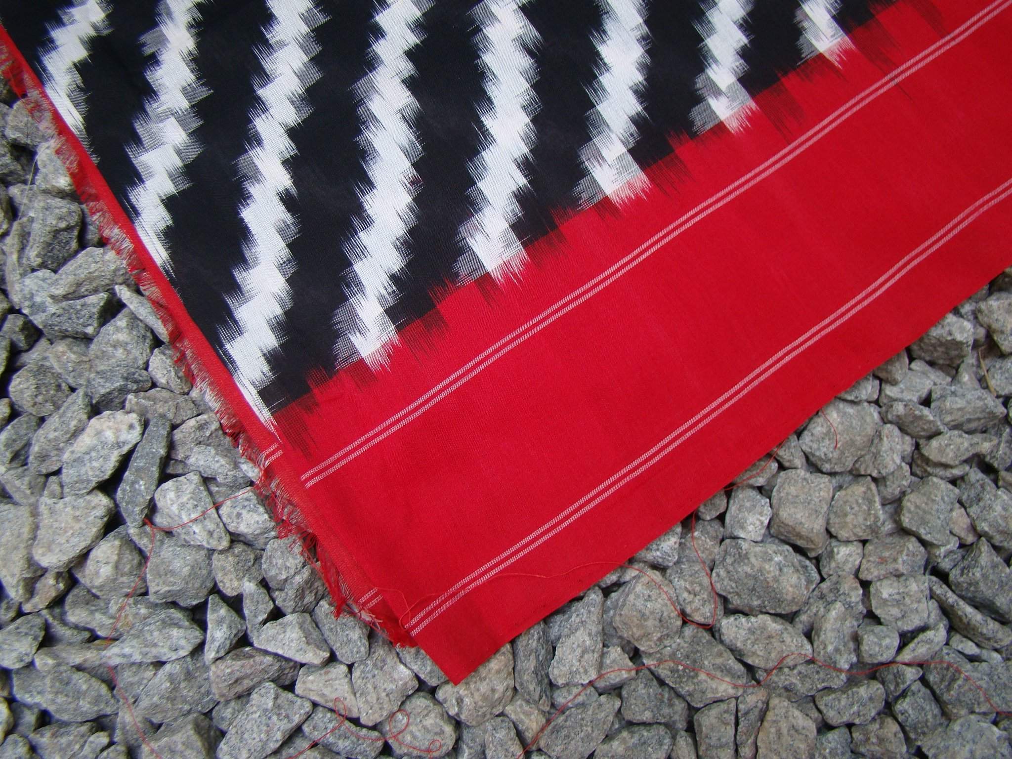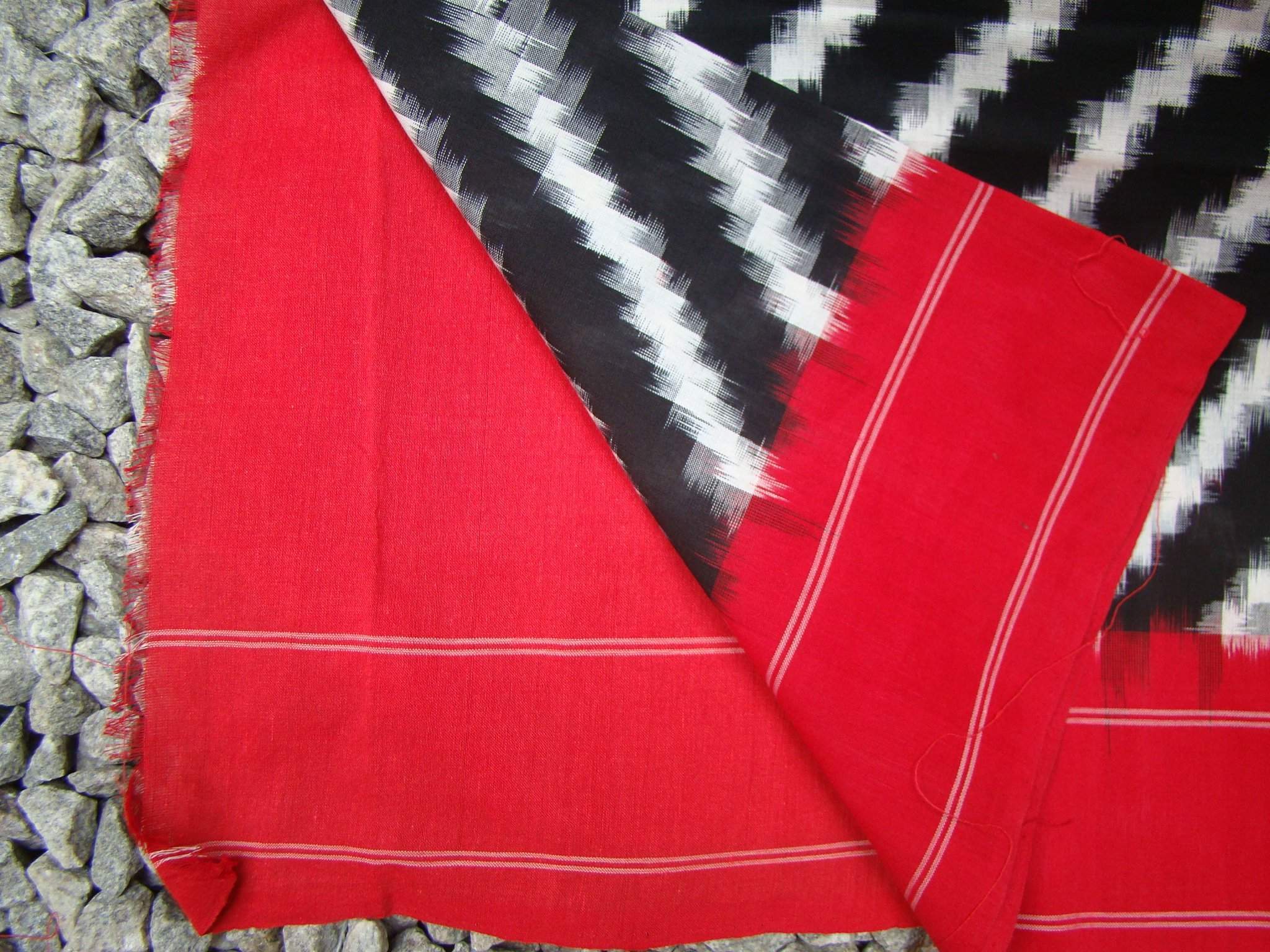 Black/White/Red Ikat Cotton Saree
