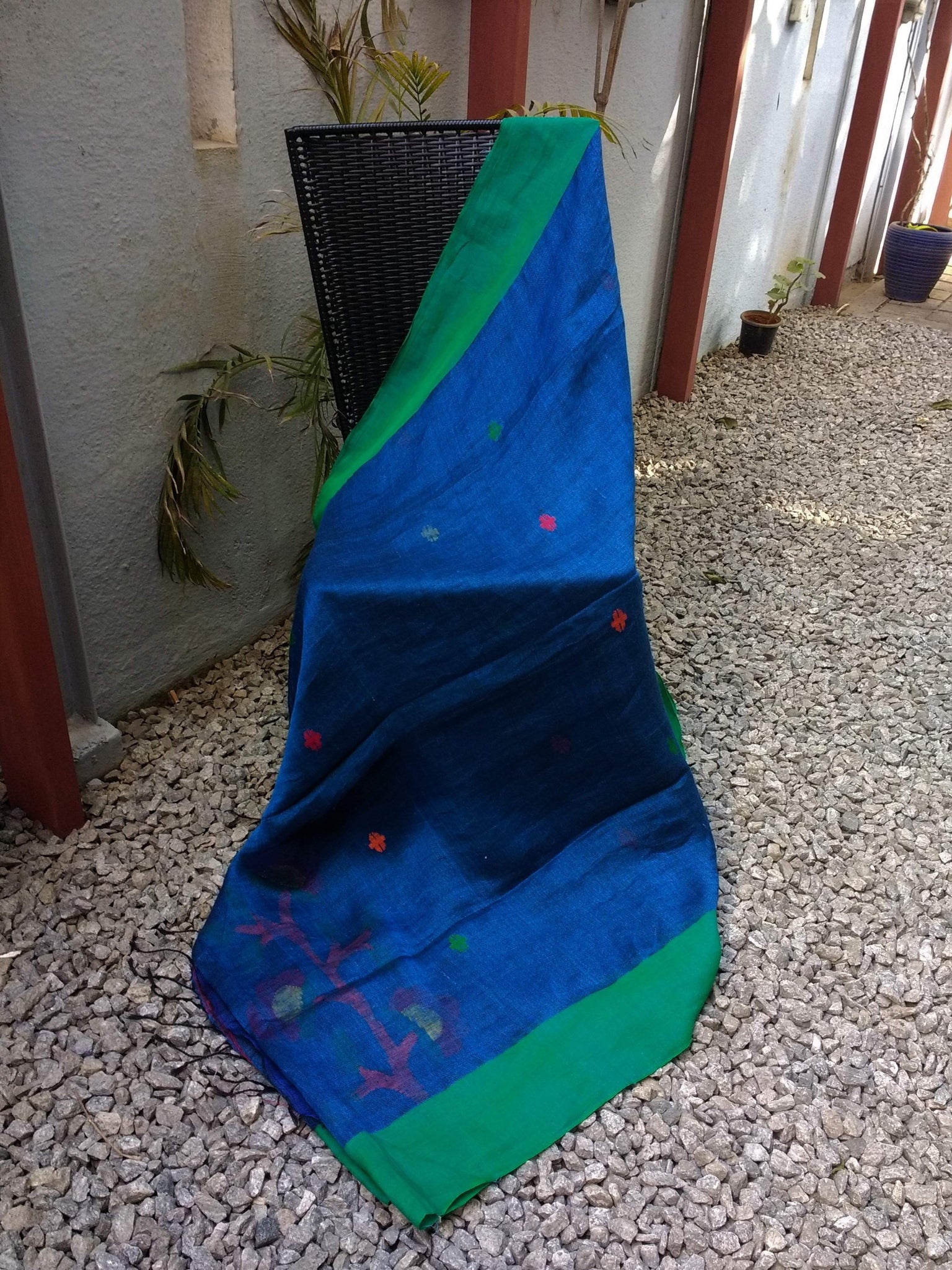 - Colour: Blue/Green with Floral Jamdani Weave