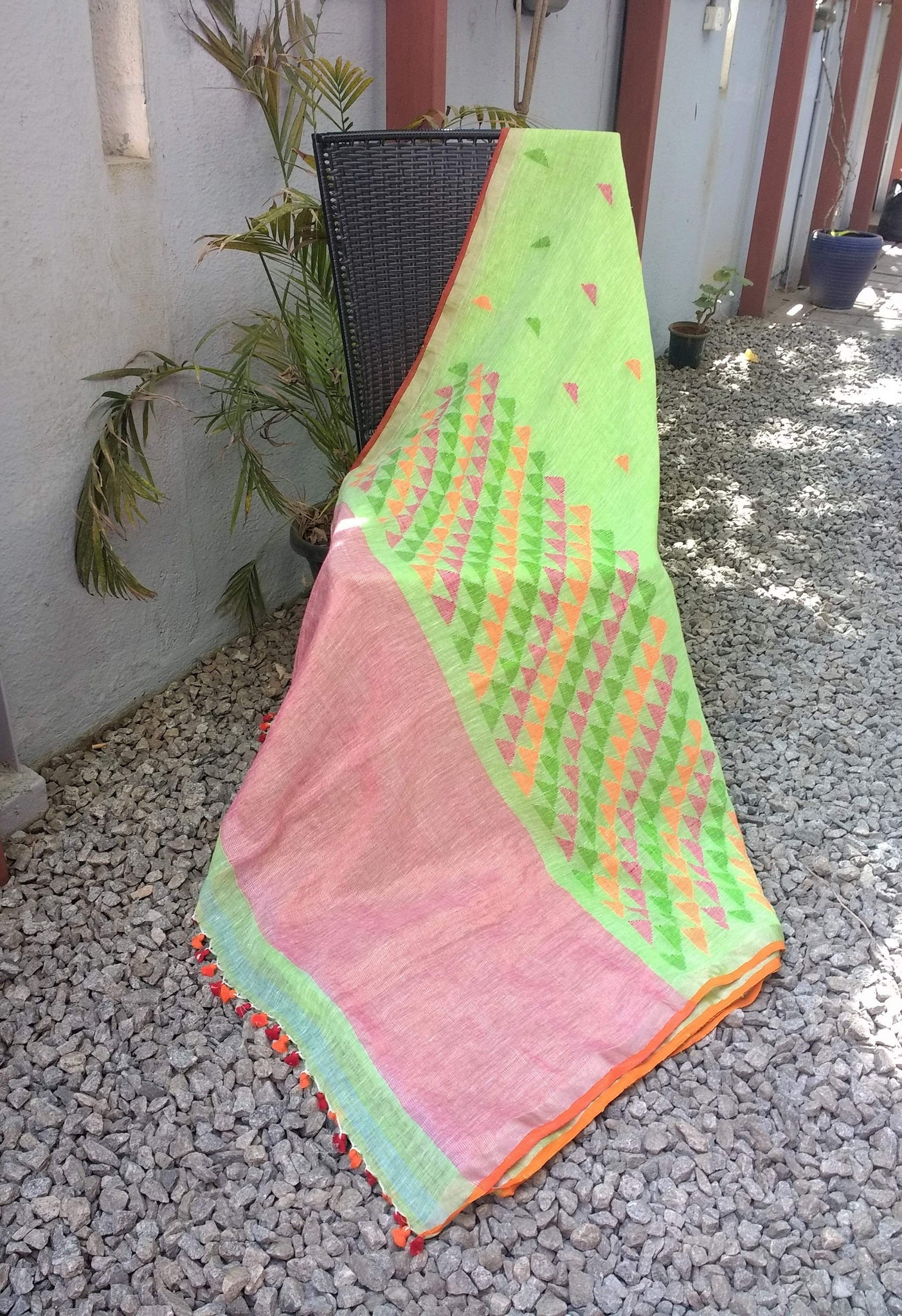 - Colour: Green/Pink with Geometrical Jamdani Weave