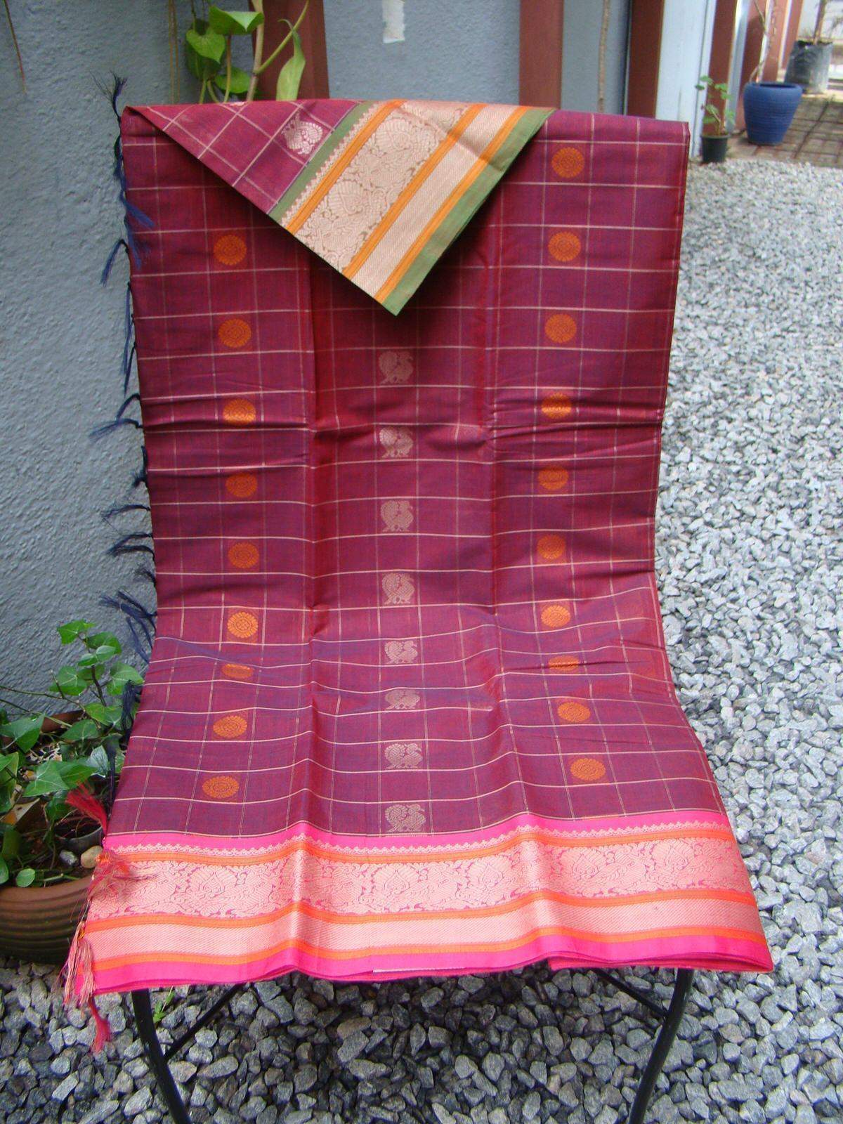 - Colour: Maroon Checks with Pink and Green Thread Weave Border